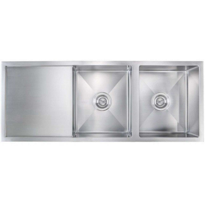 Modern National handmade sink double bowl 1110x450mm MODE-M-S206B Product Description Australian standard M-S206B Overall size: 1110 x 450 x 200 mm Thickness: 1.2 mm Double bowls with drainer Hand made stainless steel PVD stainless steel finish Round corner Round waste See also different: ACL 785x445mm 2 Bowl u/mount sink 0TH ACL 450x400mm I bowl undermount sink 0TH BOSS 785 x 445mm 2 BOWL U/MOUNT SINK O2H << return to products